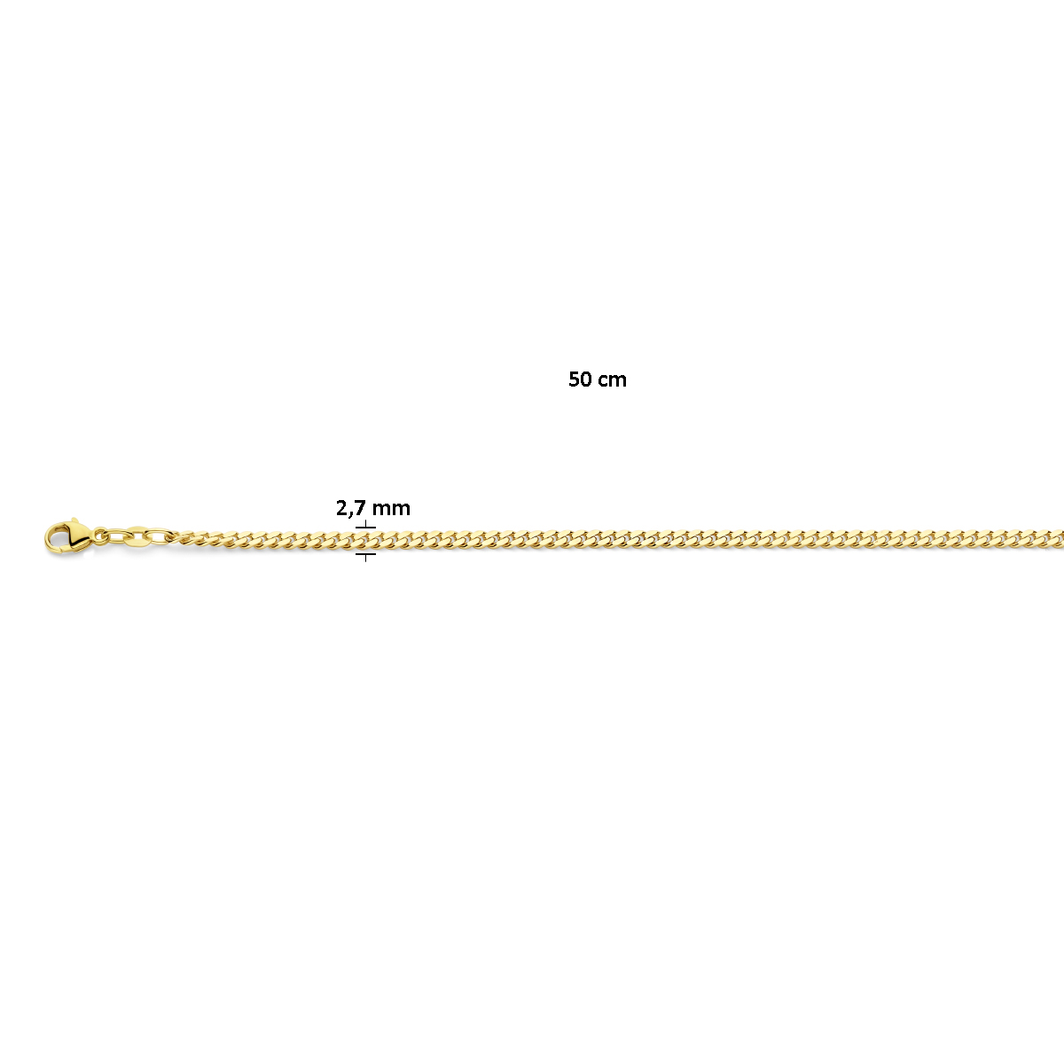 14k Geelgouden lengte-artikel met een gourmette schakel en een karabijn sluiting. De schakelbreedte is 2.7mm.