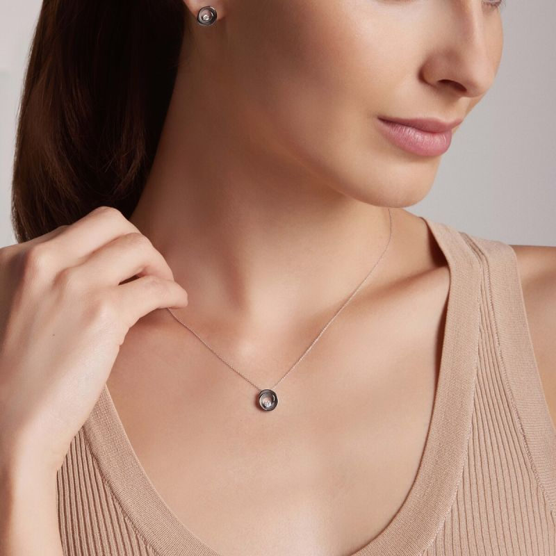 18krt gouden collier met diamant 0,10crt uit de Dune Assolo Collectie van AnnaMaria Cammilli. De kleur van het collier is yellow sunrise, een warm geel dat de energie van de zon uitstraalt en een ongekende charme uitstraalt.