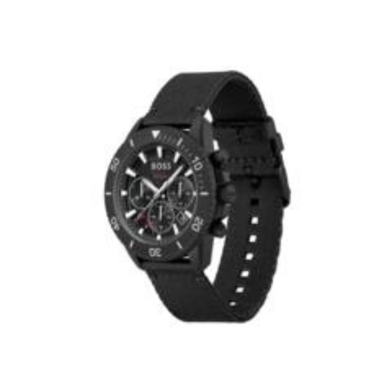 Dit BOSS horloge uit de Admiral sustainable serie met artikelnr. HB1513918 is een gerecycled horloge. Het herenhorloge valt op aan zijn zwarte ronde horlogekast en textiele band die beide gemaakt zijn van gerecycled plastic uit de zee. Het solar horloge heeft een uurwerk dat wordt aangedreven door licht van buitenaf. De energie wordt opgeslagen in een interne batterij waardoor het uurwerk een constante looptijd heeft als het wordt opgeladen. Op deze wijze kan de tijd, de chronograaf en de datum voor een langere periode blijven lopen. Het horloge heeft een doorsnee van 46mm, een mineraalglas, en is 5 ATM.