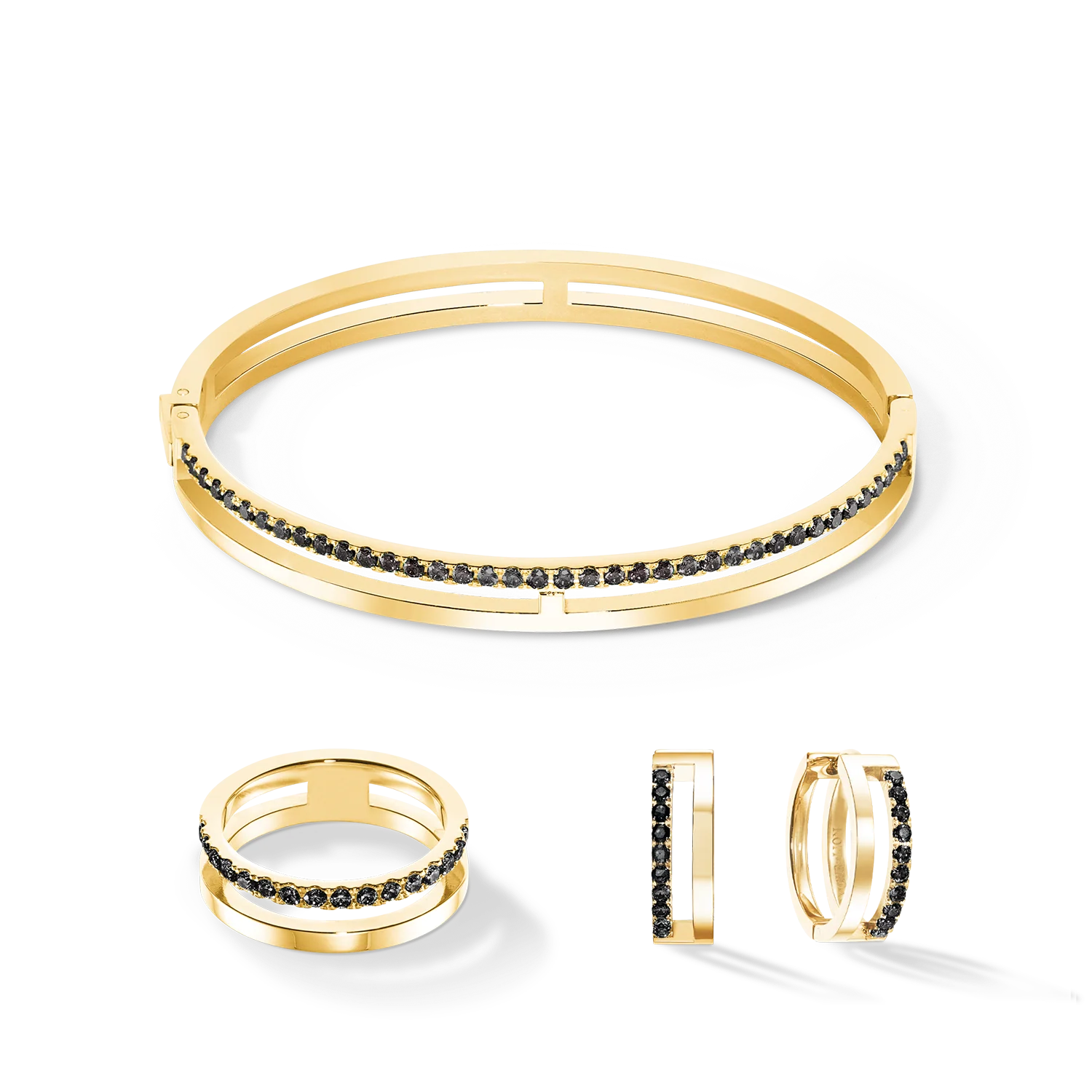 Coeur de Lion bangle armband, verguld +zwarte zirconia 19cm