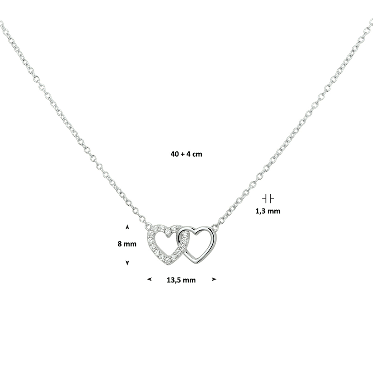 Zilver gerhodineerd collier met zirkonia hartjes 40-44 cm