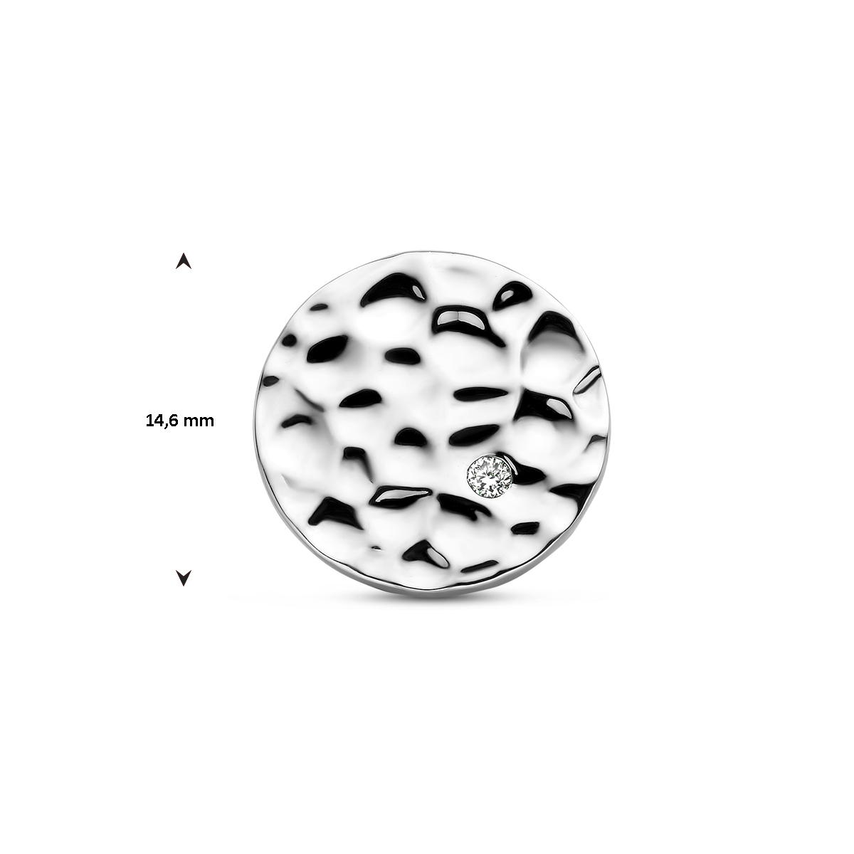 Gerhodineerd 925 zilveren hanger uitgevoerd met diamant. De hanger heeft een diameter van 14.6mm.
