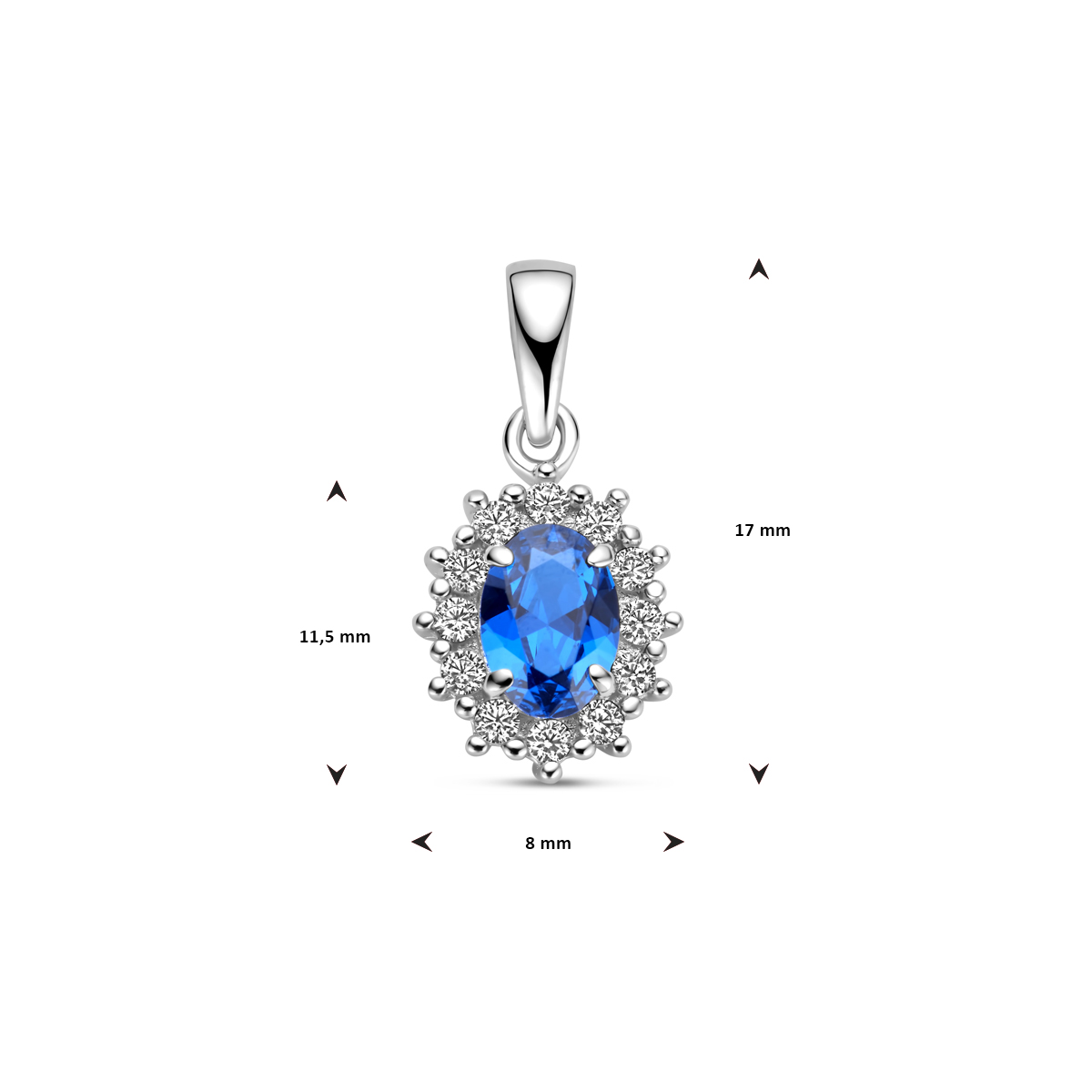 Gerhodineerd zilveren hanger met synthetische saffier en zirkonia. De hanger heeft een los hangoog.