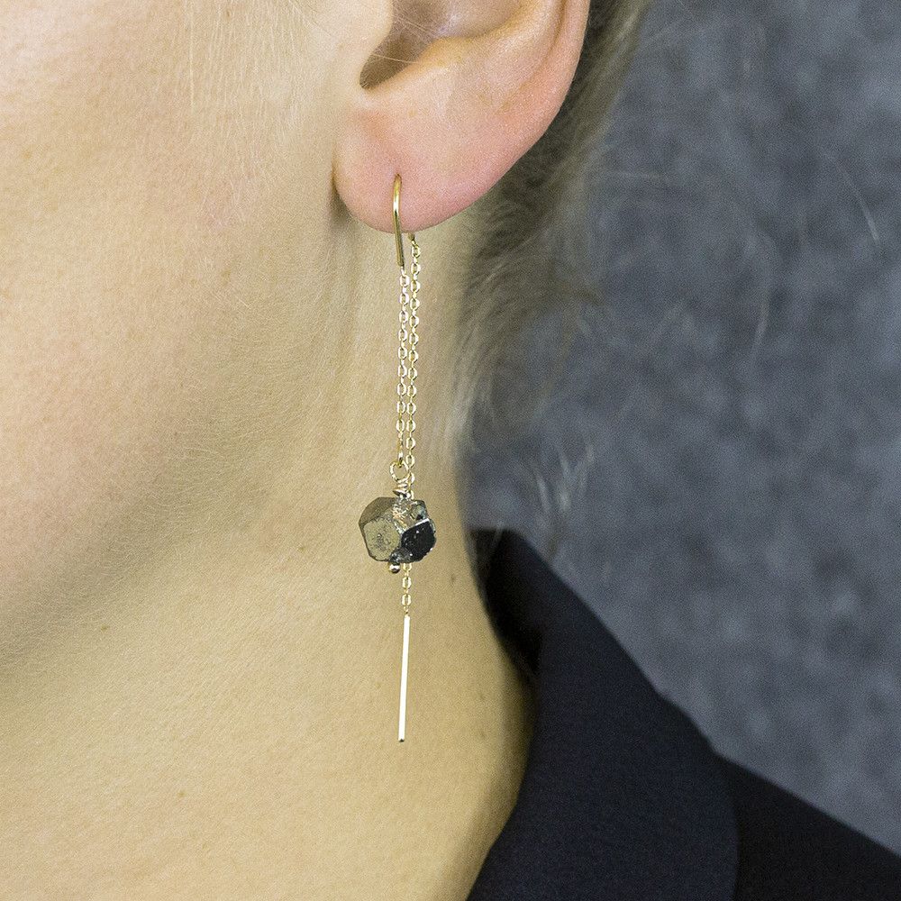 Oorhanger gemaakt van zilver verguld met daaraan een prachtige Pyriet. Pyriet is een inzichtgevende steen en bevordert de zelfkennis.