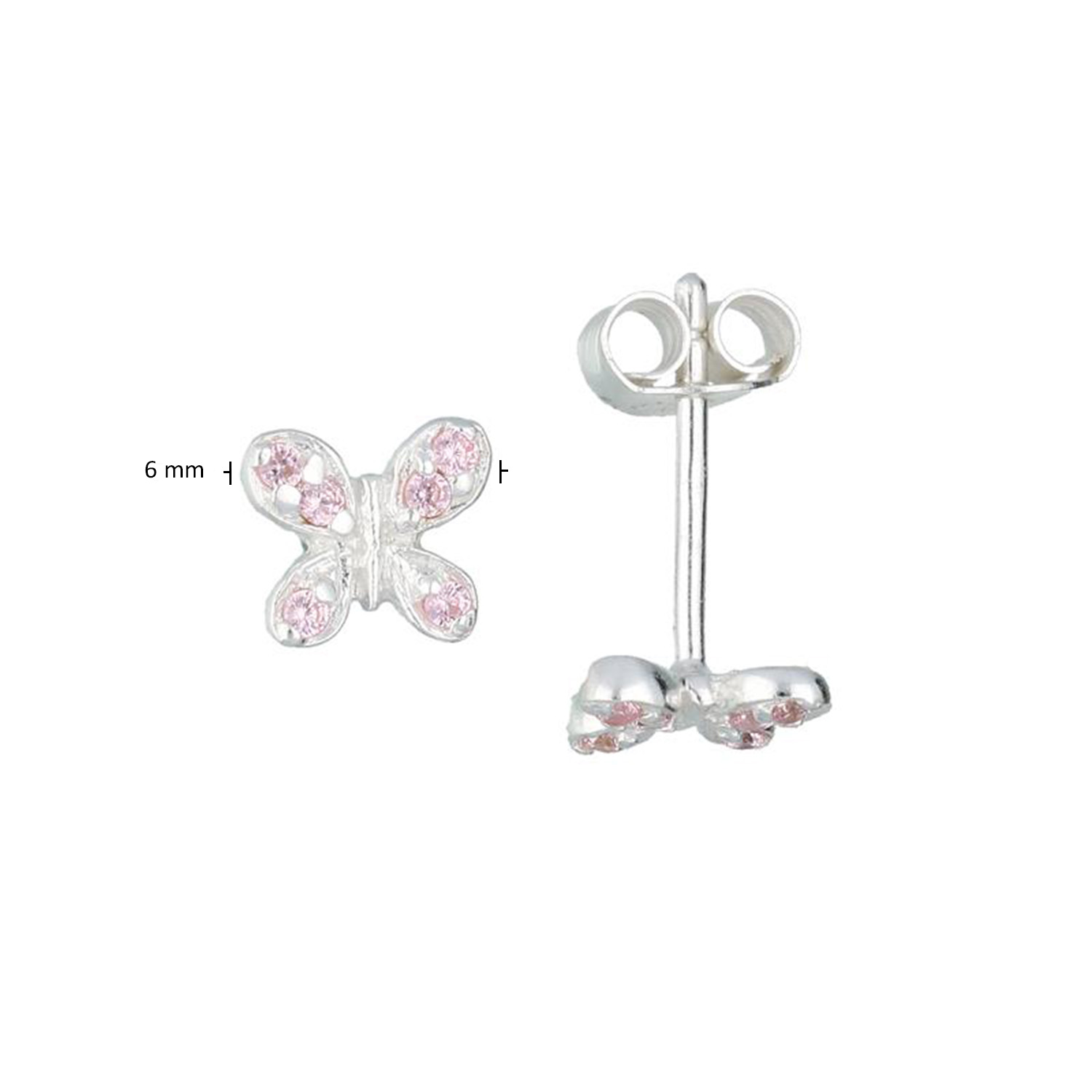 Deze zilveren oorknoppen, modelnummer 106621800, zijn prachtige stud oorbellen in de vorm van een vlinder, bezet met fonkelende zirkonia's. Ze zijn zilverkleurig en wegen 1.0 gram met een breedte van 6 mm. Perfect voor zowel dagelijks gebruik als speciale gelegenheden, voegen ze een subtiele elegantie en sprankeling toe aan elke look.