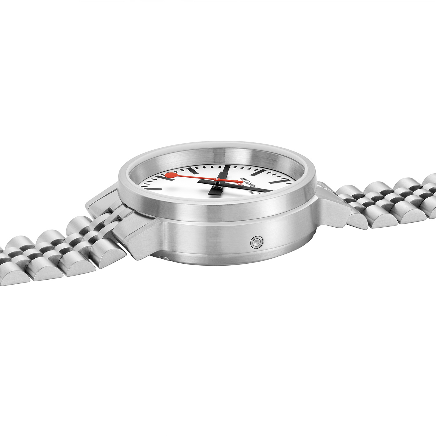 The Official Swiss Railway Watch. Gebaseerd op de officiële stationsklok van de Zwitserse spoorwegen, is 30 jaar geleden de horlogelijn onder het merk Mondaine opgezet. Zwitserse kwaliteitsuurwerken, net zo punctueel als de Zwitserse treinen. Een echte design klassieker met een unieke wijzerplaat, en de wereldberoemde rode secondewijzer met bolletje. Herkenbaar uit duizenden.