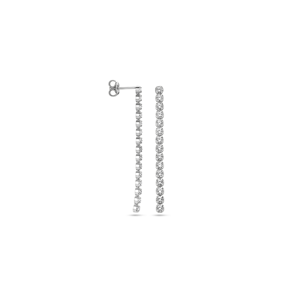 Gerhodineerd 925 zilveren oorhangers uitgevoerd met zirkonia. De oorhangers hebben een breedte van 3mm.