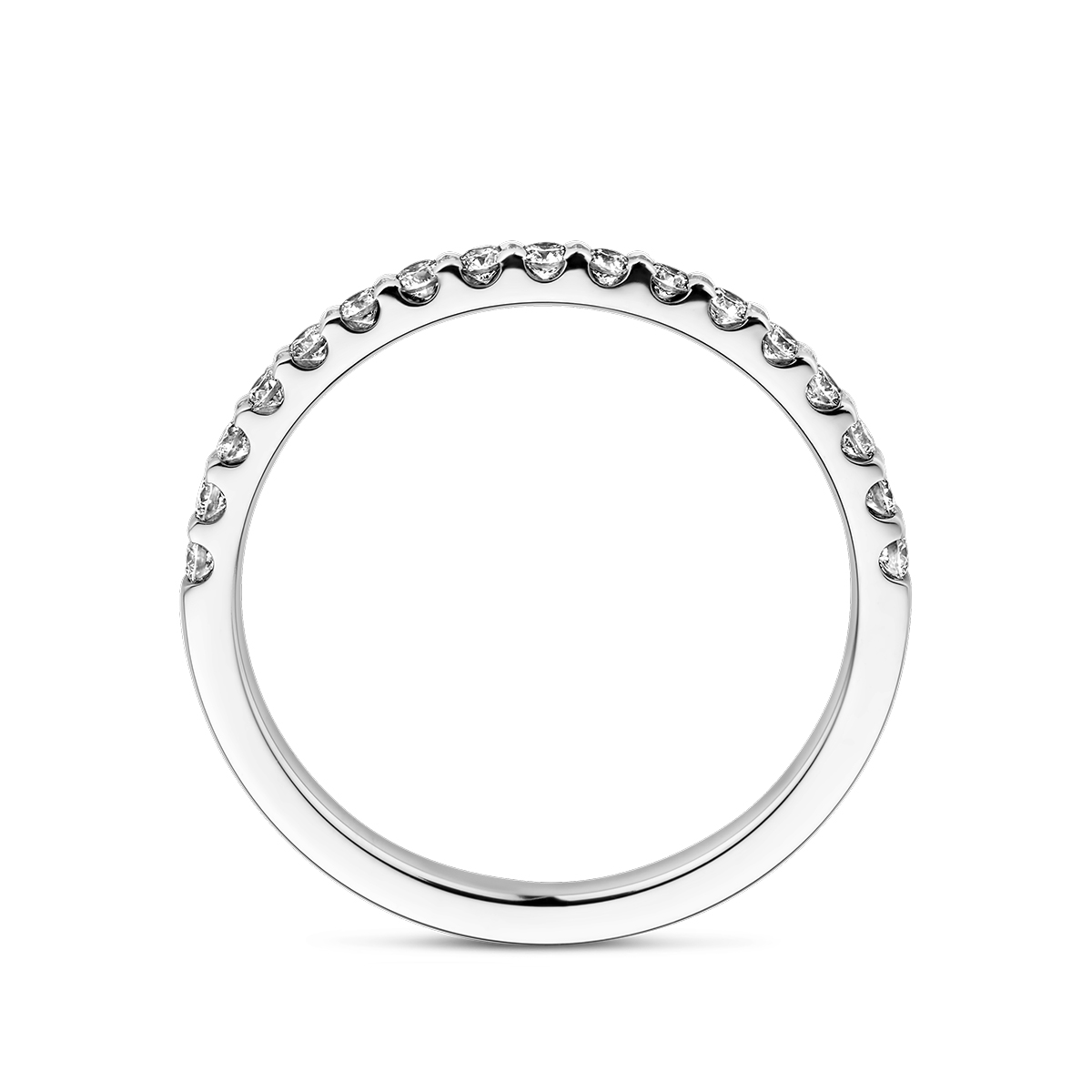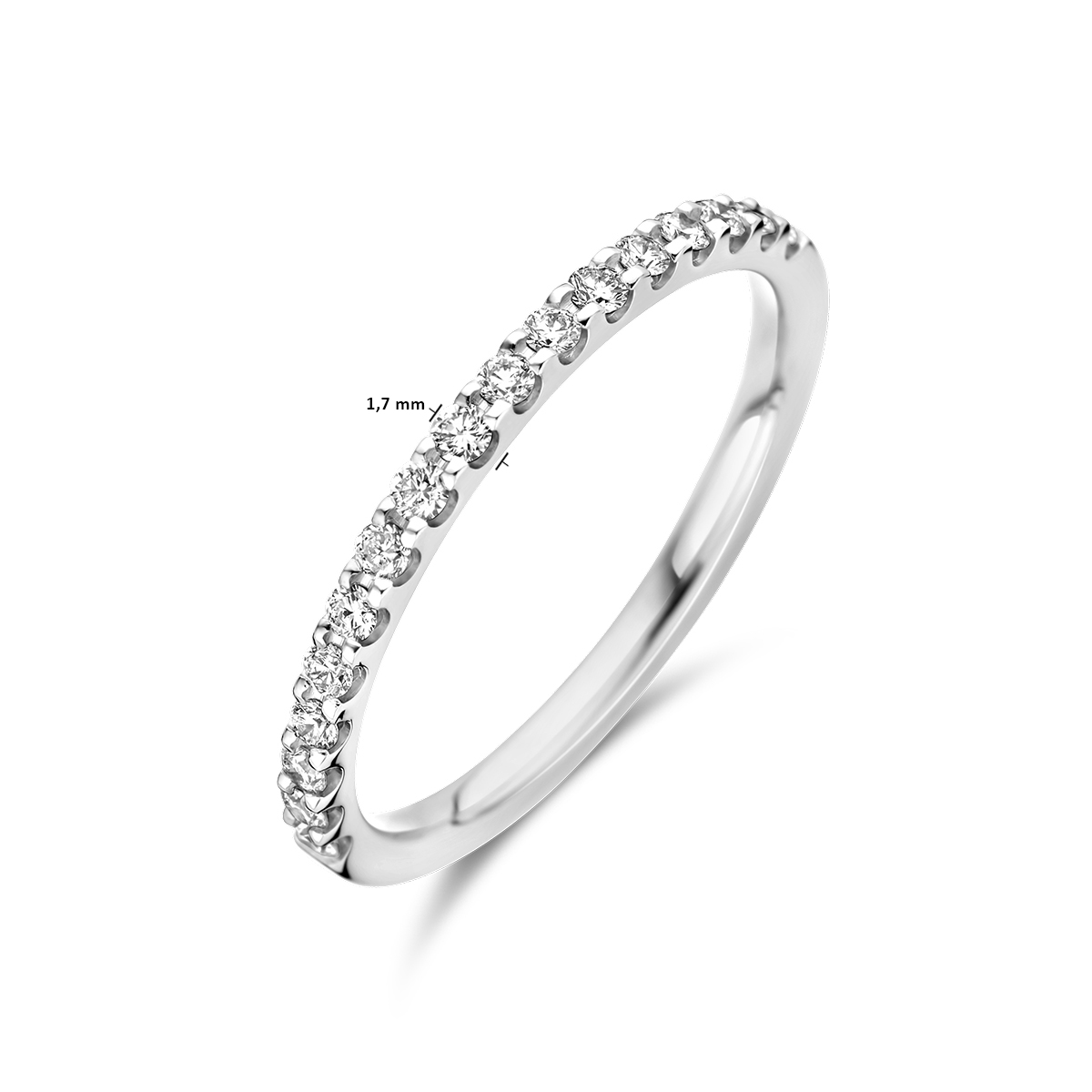 Platina ring uitgevoerd met diamant. De ring heeft een breedte van 1.7mm.