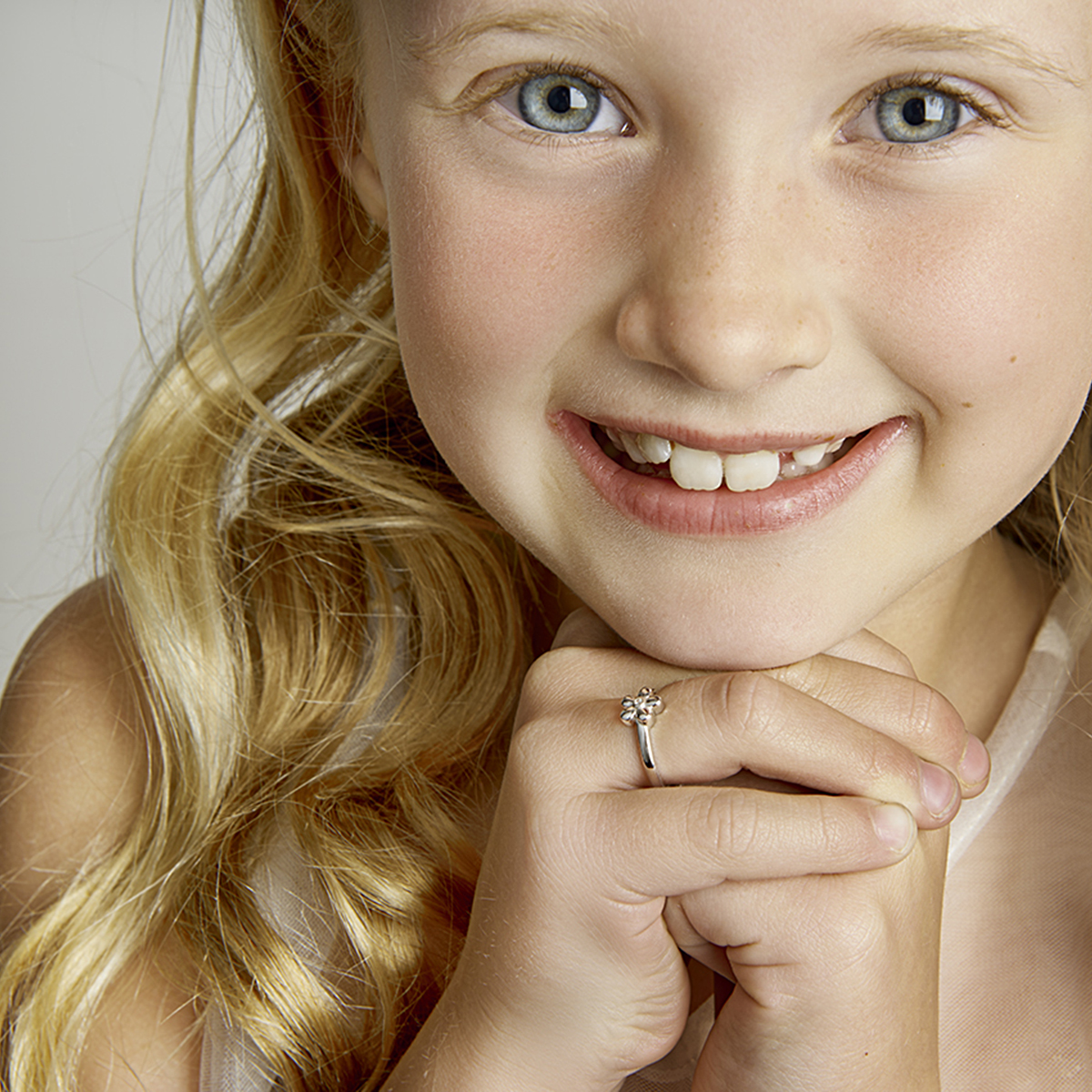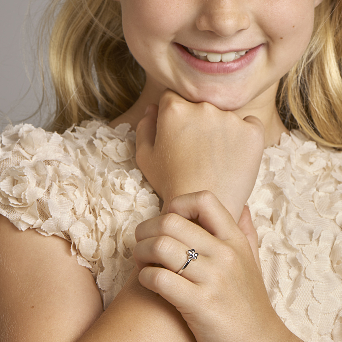 Gerhodineerd zilveren ring in de vorm van een bloem. Uitgevoerd met een schitterende zirkonia. Tip: Leuk om kado te geven! Zie je ze al stralen?