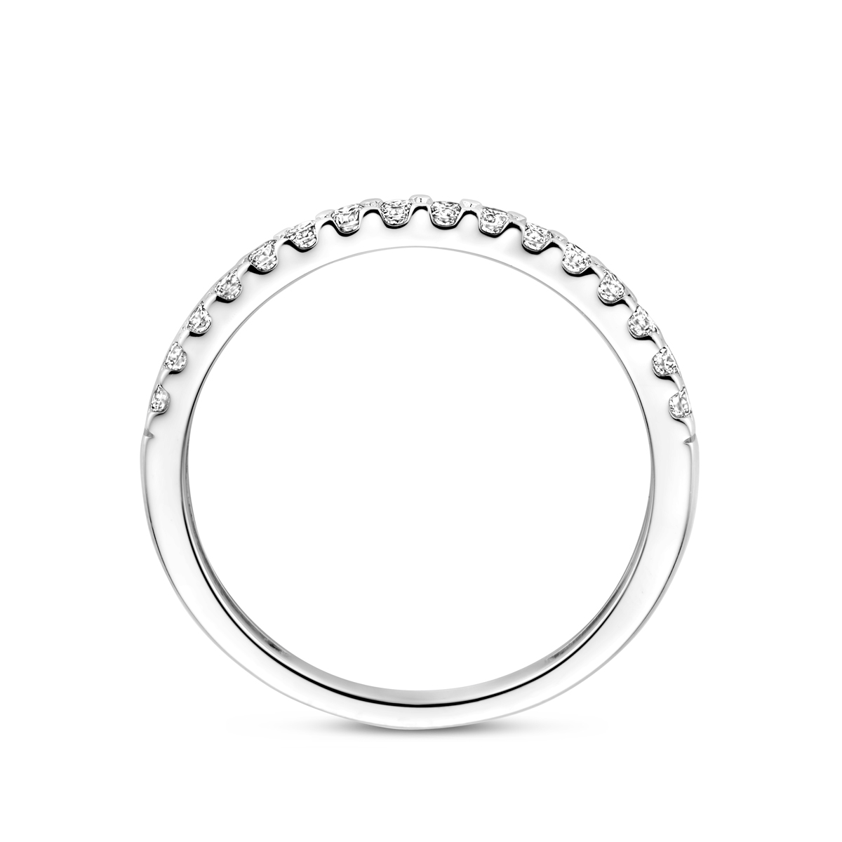 14k Witgouden ring uitgevoerd met lab grown diamant. De ring heeft een breedte van 2mm. Het totale diamantgewicht is 0.25ct. Lab grown diamanten zijn diamanten die ontstaan in een laboratorium. Onder extreem hoge druk en temperatuur wordt het natuurlijk ontstaansproces nagebootst met als eindresultaat een diamant met dezelfde chemische eigenschappen maar met een andere oorsprong.