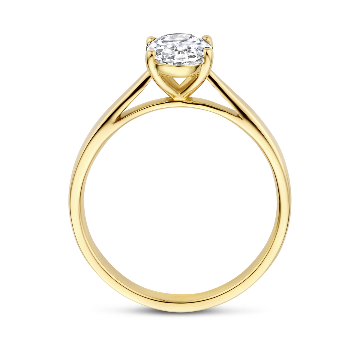 14k Geelgouden ring uitgevoerd met lab grown diamant. De ring heeft en afmeting van 8.5x6mm.