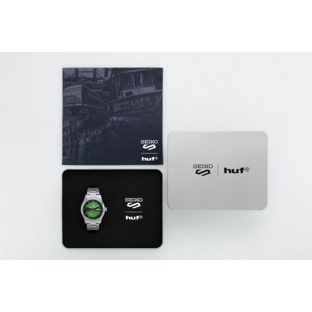Bestel uw Seiko 5 Sports HUF Limited Edition herenhorloge direct via www.juwelierhaesen.nl. Dit Seiko Limited Edition Seiko 5 Limited x Collaboration Seiko 5 herenhorloge is bekend onder Seiko-referentienummer SRPM09K1 en daarnaast onder het EAN: . Het horloge heeft een mechanisch uurwerk met automatische opwindfunctie dat geplaatst is in een edelstalen kast. Op de (deels) doorzichtige groene wijzerplaat is analoge tijdsweergave zichtbaar. Aan de kast zit een staal- of zilverkleurige stalen horlogeband met een vouwsluiting.