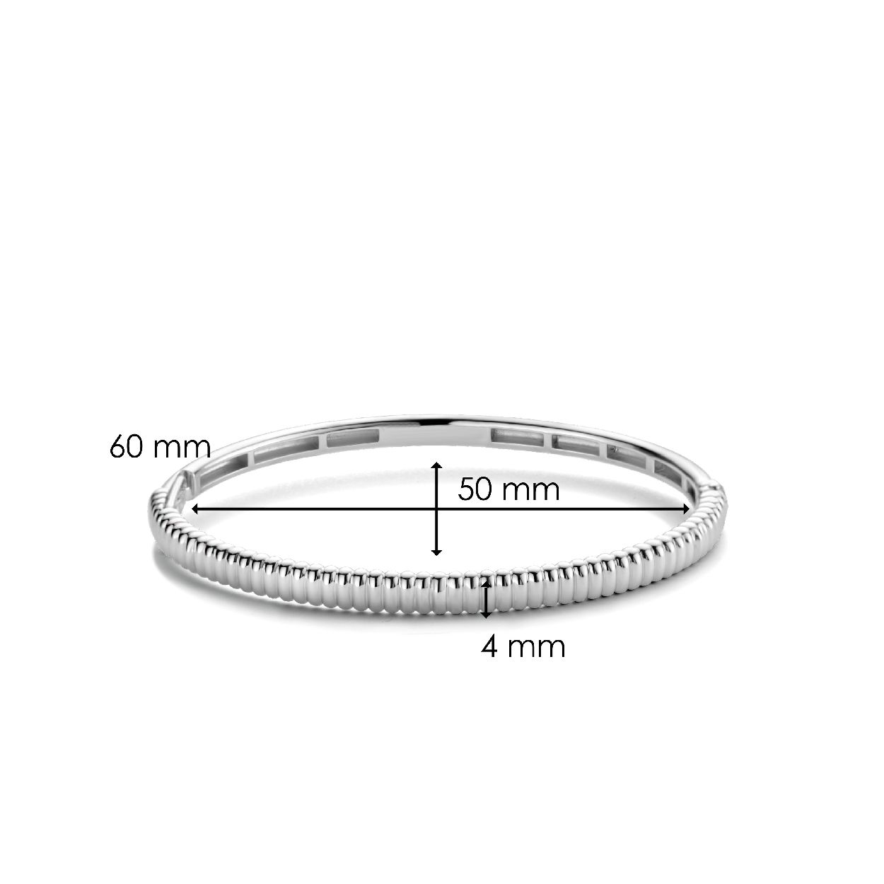 Deze slanke TI SENTO - Milano zilveren bangle 2956SI heeft een sierlijk geribbelde structuur. De armband is gemaakt van 925 sterling zilver en gecoat met een rijk laagje rhodium om het te beschermen en de glans te behouden. Een verfijnd en tijdloos juweel. De extra veilige sluiting is speciaal ontworpen zodat dit sieraad altijd bij je blijft.
