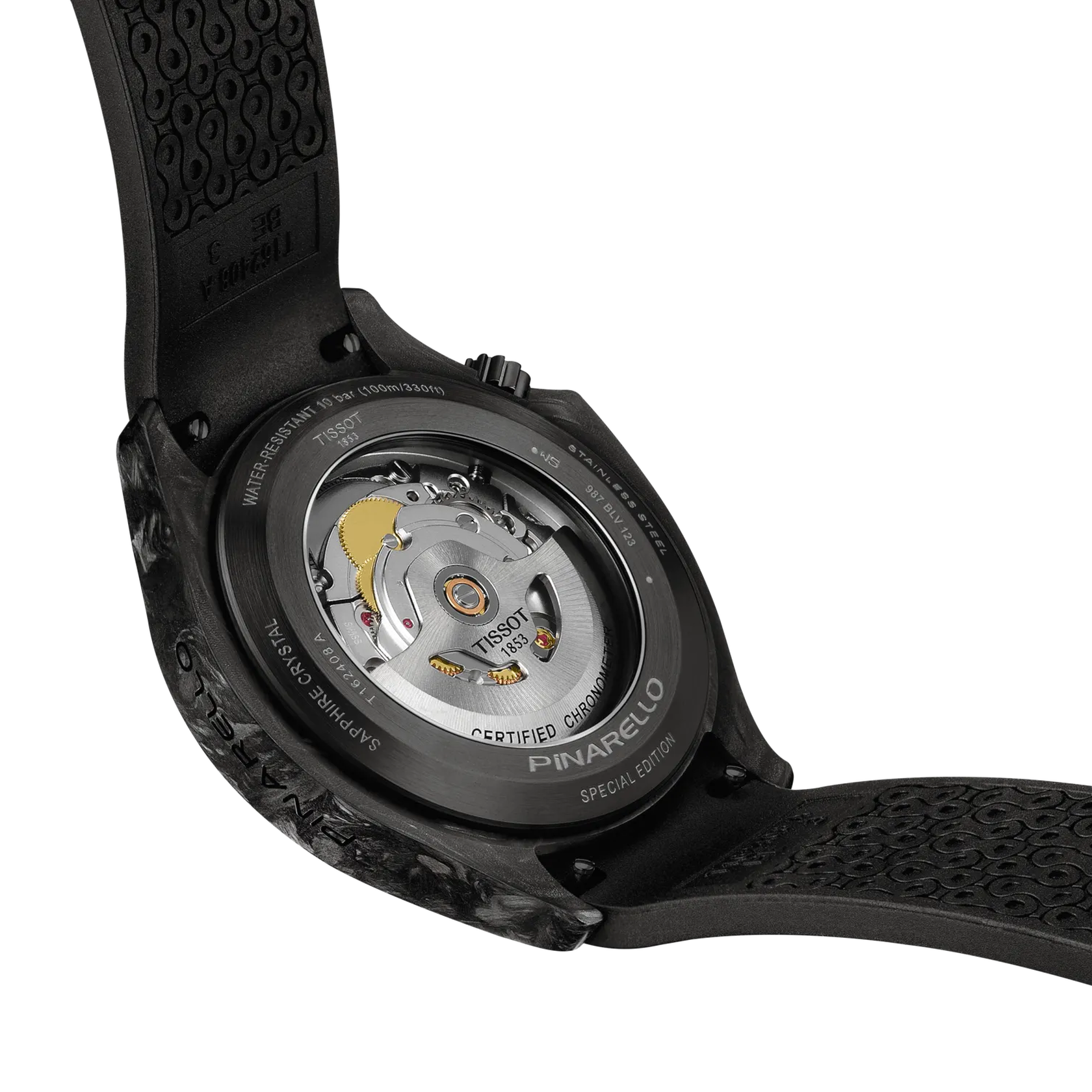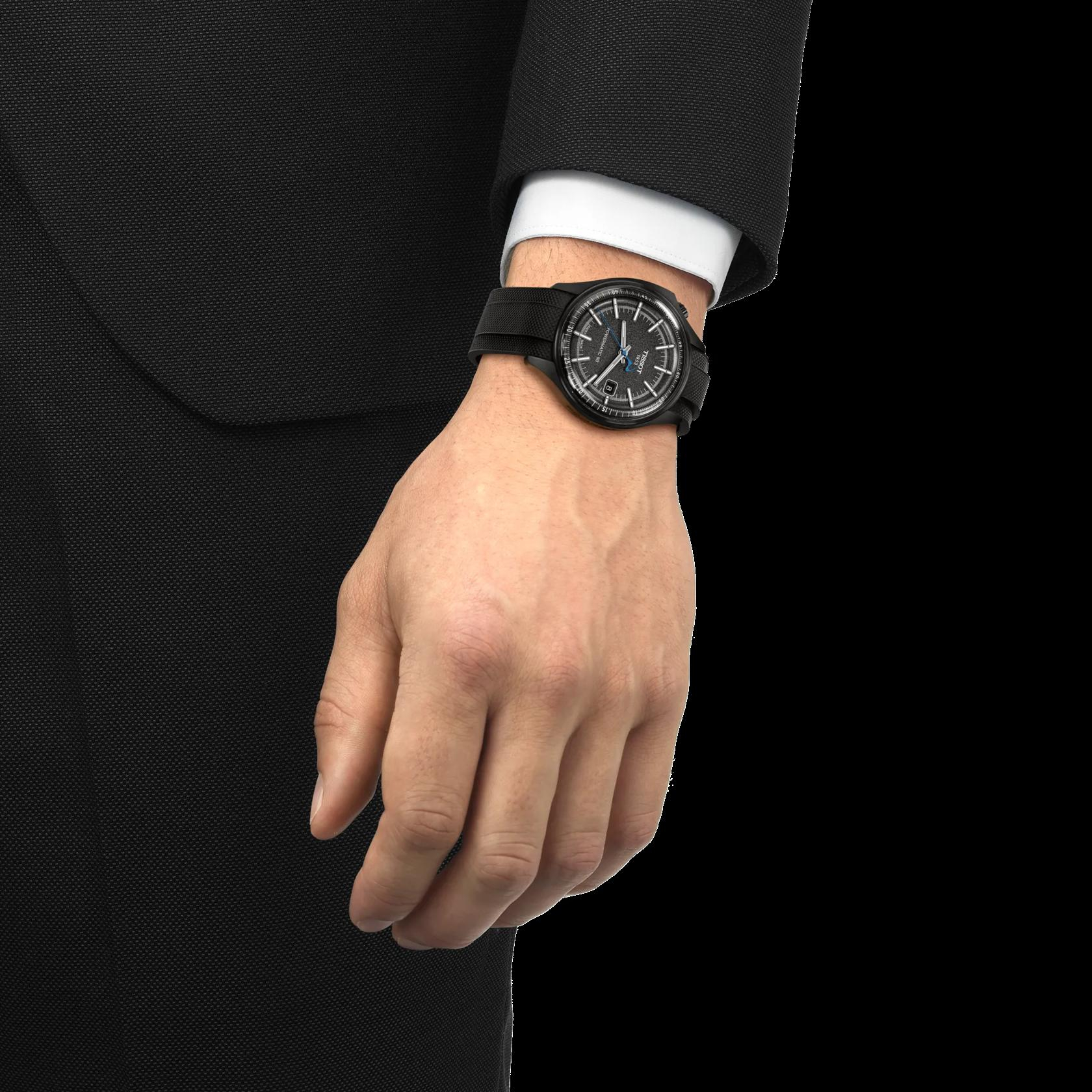 De Tissot Pinarello 43mm - T162.408.97.061.00 is een elegante horloge met een carbonvezel kast, zwarte silicone band en een automatisch Zwitsers uurwerk. Het analoge horloge heeft een saffierglas en is waterbestendig tot 10 bar. Perfect om dagelijks te dragen dankzij het stijlvolle ontwerp en het comfortabele ontwerp. Draag het als een statement accessoire bij formele en informele outfits.