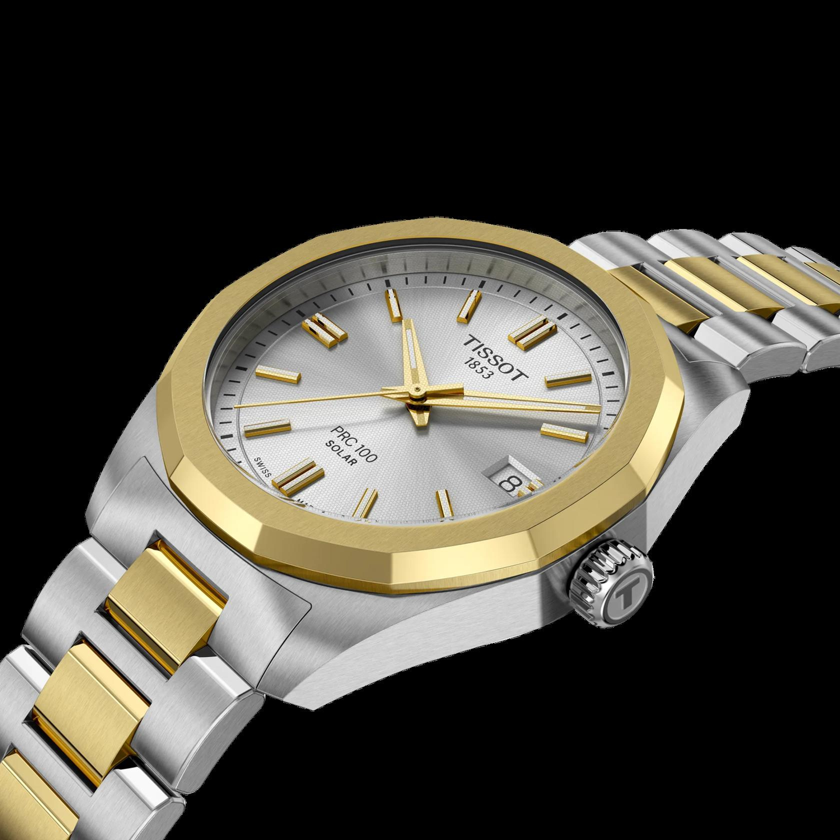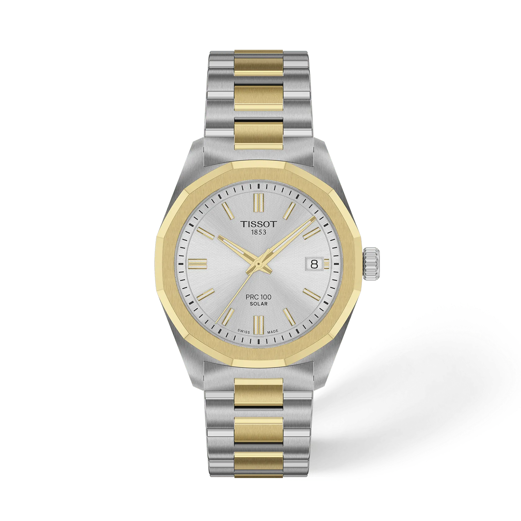 De Tissot PRC100 Solar (modelnummer T1518222203100) biedt een stijlvolle en duurzame keuze met zijn ronde roestvrijstalen kast, gouden en zilverkleurige band en zonne-energiebeweging. Ideaal voor dagelijks gebruik dankzij zijn waterdichtheid tot 10 ATM en krasbestendig saffierglas. Draag deze polshorloge voor zowel formele als casual gelegenheden voor een geraffineerde look.