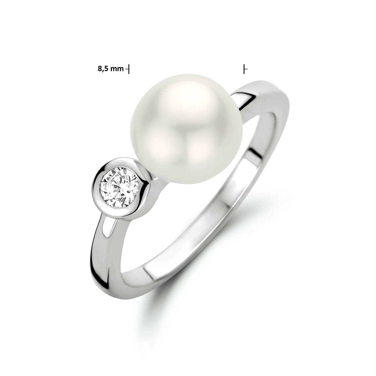 ring parel en zirkonia zilver gerhodineerd