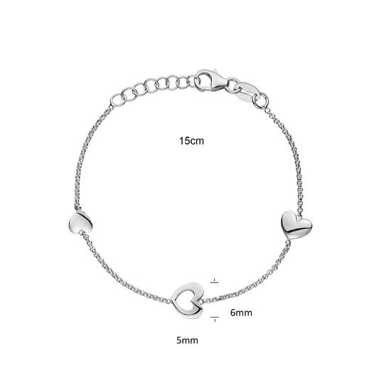 De Zilver gerhodineerde kinderarmband met modelnummer 104057116 is een stijlvolle kinderarmband met drie hartjes. Deze armband valt onder de categorie 'sieraad' en het type 'armband', met een maat van 160. Draag deze armband comfortabel om de pols van uw kind voor een elegante uitstraling bij elke gelegenheid. Perfect als cadeau of als dagelijks accessoire.